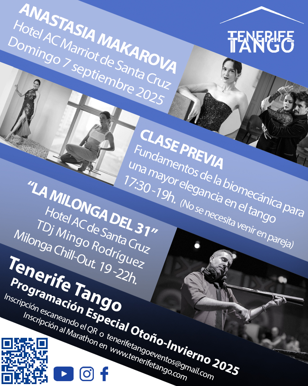 Edición de vuelta de vacaciones, del TENERIFE TANGO WEEKEND, con la profesora y bailarina profesional rusa, Anastasia Makarova.