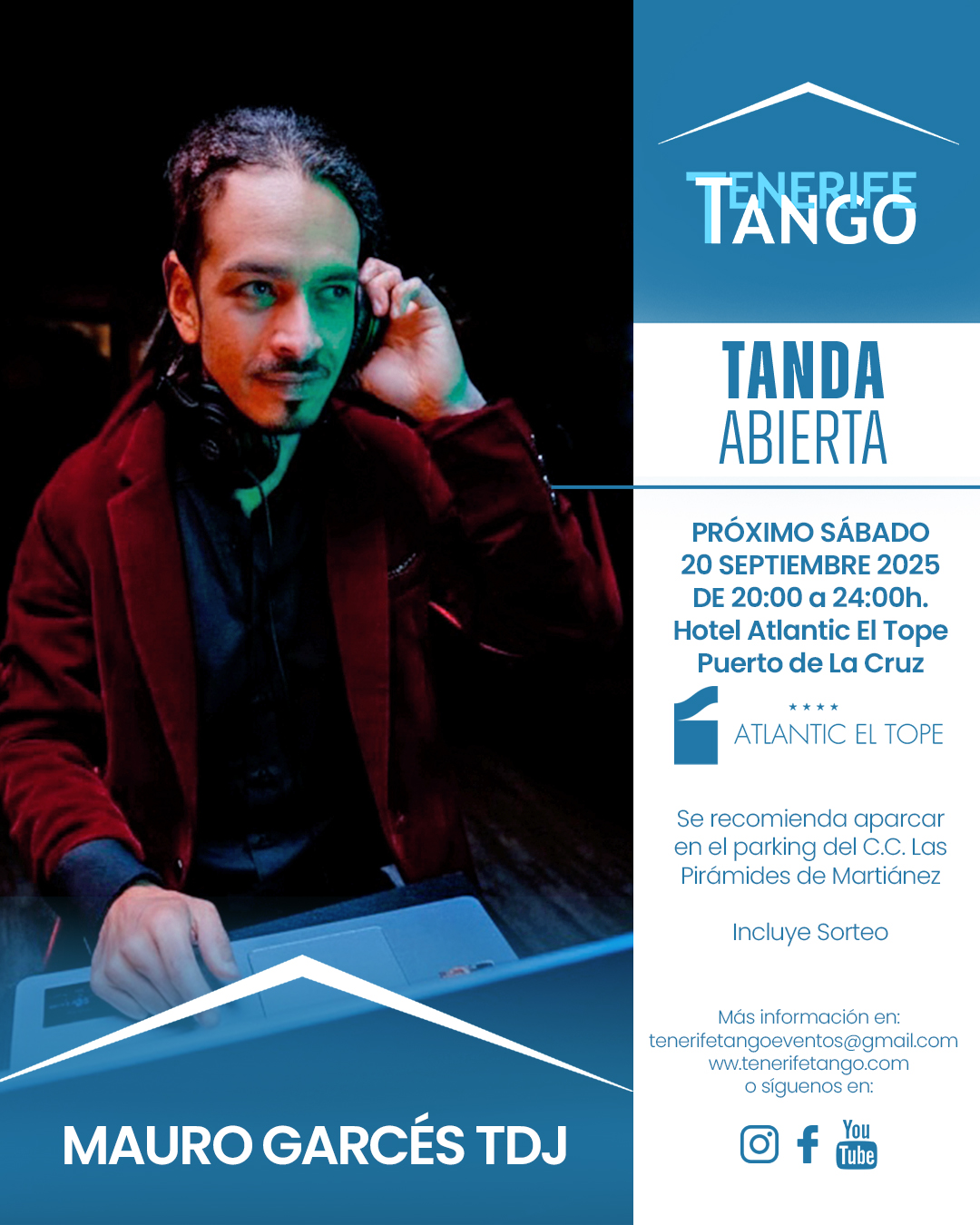 Te invitamos este sábado 20 de septiembre a la milonga “Tanda Abierta”, tu clásica cita con TDj invitado en Tenerife. En esta ocasión con Mauro Garcés, Tango DJ y bandoneonista del grupo “Delta Tango”.