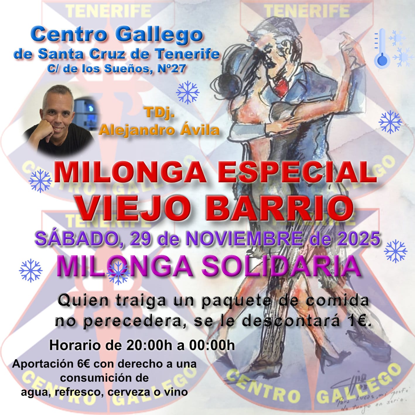MILONGA DECANA 🥳💃🕺🥳de Canarias «VIEJO BARRIO» en Santa Cruz de Tenerife, en el CENTRO GALLEGO, que desde su fundación, en diciembre de 1962, sigue apostando por la cultura y los actos sociales.